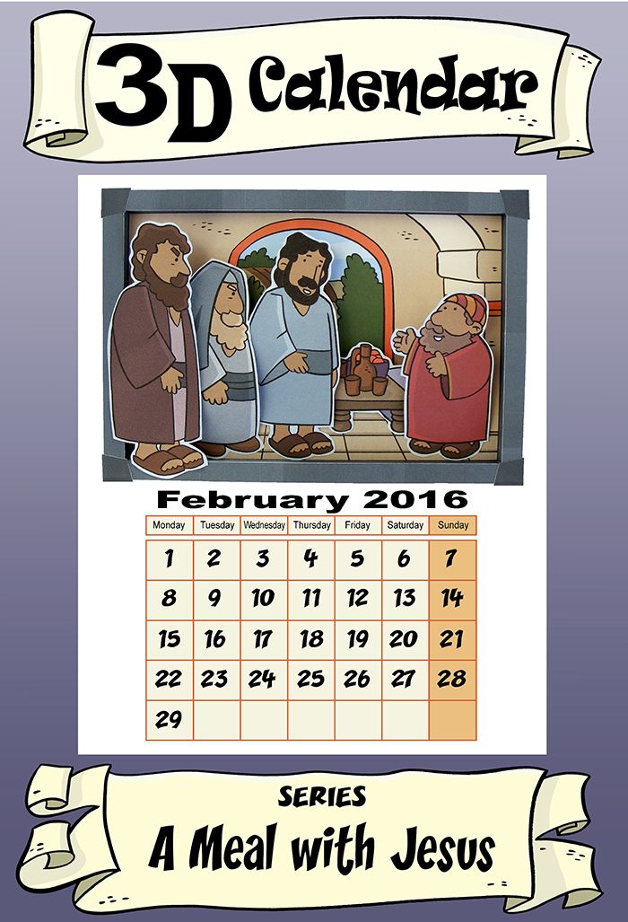 Here’s a new series of 3D calendars for 2016, “A Meal with Jesus,” which will depict twelve different events of Jesus having a meal with others.